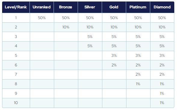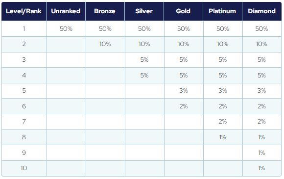 2% split between all qualified Diamond ranked members